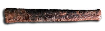 It is known as ‘the Ishango Bone’. It is an object made from a piece of quartz and a bone handle. Its structure alone makes it a remarkable object, as there are very few surviving prehistoric composite tools. The very fine quartz at one end could have been used for precise work, such as the ritual scarification of skin, for example. The bone handle has been narrowed, scraped, polished and engraved, so we can no longer tell what kind of bone it is, although we do know it belonged to a mammal.